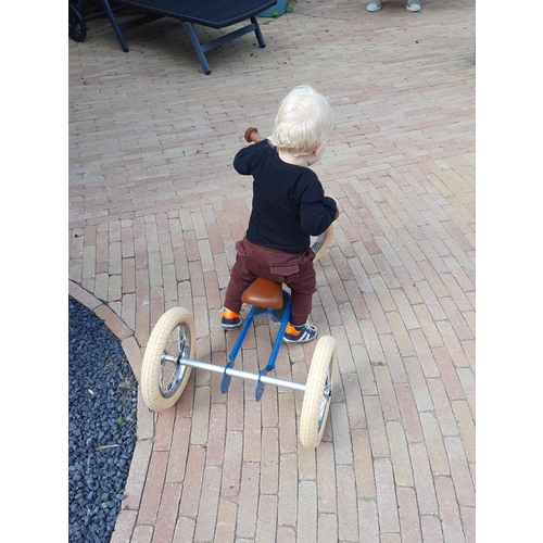 Wij hadden een driewieler van Little Tikes, zo’n eentje met een duwstang. Er zit ook een beugel op waardoor de kleine niet kan vallen. Het fietsje heeft ook trappers. De duwstang en beugels kunnen er ook af, de trappers denk ik niet.