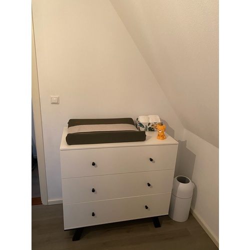 Ik heb het verschoonkussen wel een kwartslag gedraaid, vind ik veel makkelijker werken. En dan weet je zeker dat het niet tegen de muur aan gaat. 馃槈