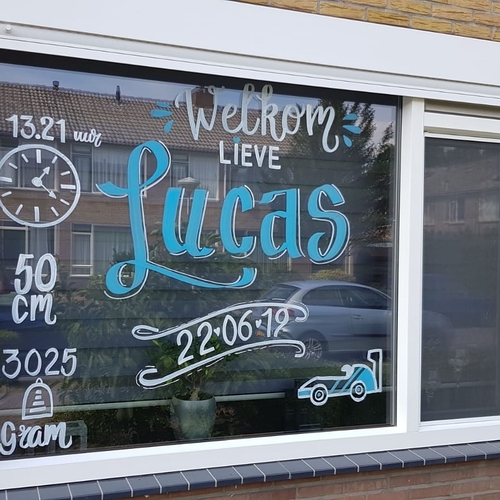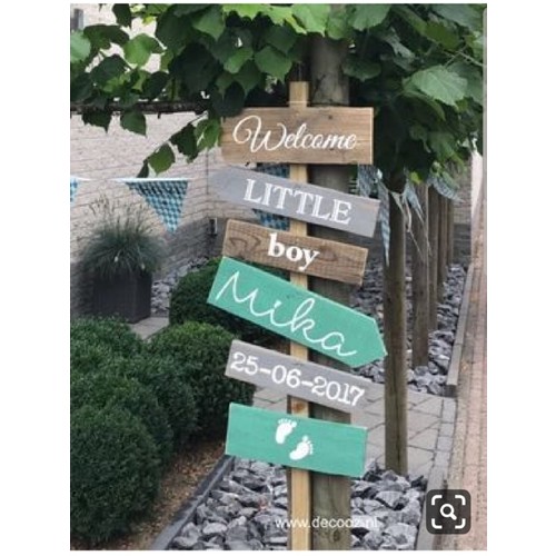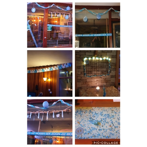 Wij hebben zelf een geboorte bord en versiering uitgekozen en gekocht, maar het is allemaal door mijn ouders/schoonouders en een vriendin geplaatst en versierd.