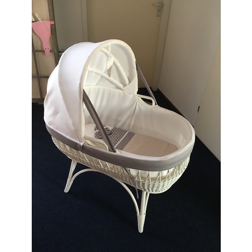 Hier ook de wieg opnieuw (laten) opgeknapt. De kraamhulp zei dat het prima is, zolang het katoen is. Daar ventileert het genoeg doorheen. Hier hebben mijn beide jongens erin gelegen. (Jongste nog steeds) en nooit met hun gezicht aan de rand gelegen. Oudste was ook al te groot voor de wieg toen hij begon met rollen.