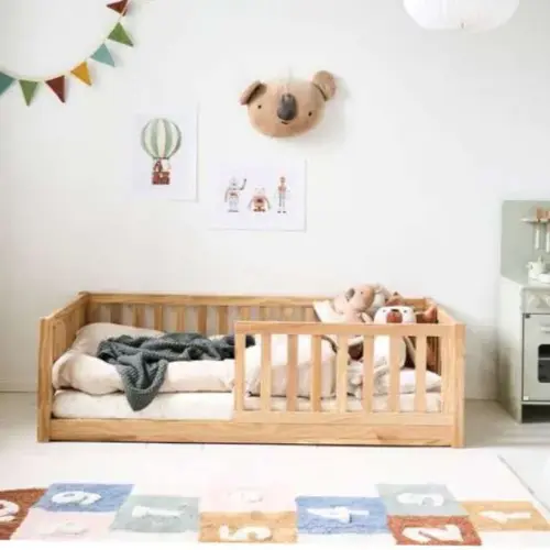 Nou op dit moment slaapt ons zoontje bij ons in bed. We hebben al veel geprobeerd maar zijn ledikant is echt voor hem vreselijk, en op de een of andere manier slaapt hij veel rustiger als we hem in een groot bed leggen (ook bij anderen). Ik heb dus een beetje ingevuld dat hij zon ledikantje misschien wat benauwend vindt. En ik heb ook gelezen over het Montessori vloerbed dat het opzich geen kwaad zou kunnen als hij snachts zou gaan spelen, behalve dat hij misschien wel heel moe gaat worden haha. Maar we dachten als overgang van ons bed naar zijn eigen kamer, dan zon bedje nemen.