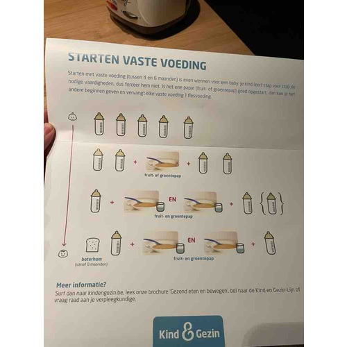 Vond ik ook lastig idd; melk is de hoofdvoeding tot 1 jaar, maar het is ook belangrijk om aan andere smaken/texturen en het "eten" te wennen.