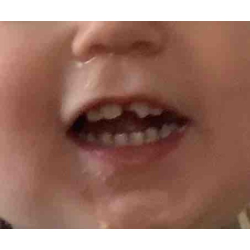 Mijn dochter heeft precies het zelfde gehad, vlak voor haar eerste verjaardag. Net de tandjes door, vallen en inderdaad bijna een halve tand weg 😭
