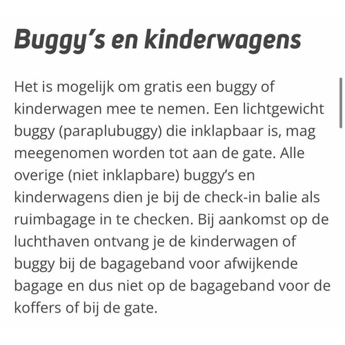 Je vliegt met corendon zeg je? Die bellen en vragen hoe het zit met kinderwagens. Dit is géén buggy.