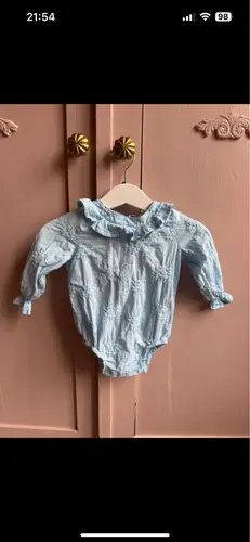 4. Ik doe hem altijd een romper aan, bij erg warm weer doe ik hem alleen een romper aan en dan geen shirt erover. Die blauwe blouse body zou ik aantrekken met een romper eronder en dan nog een broekje bijv.
