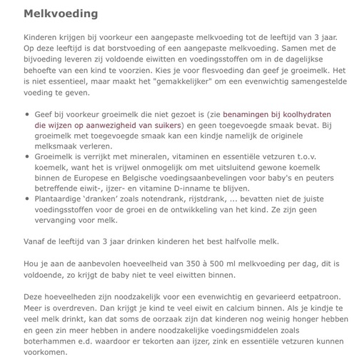 Dat snap ik ook niet goed van de Nl richtlijnen. België raadt effectief volle melk aan, en pas vanaf 3 jaar halfvolle.