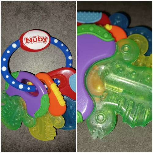 Deze hebben wij nog in de box hangen in de babygym! Gelukkig ligt ie daar vrijwel nooit meer in en speelt ie ook niet meer echt met dit speeltje. Maar goed dat je het even zegt! Hij heeft al 4 snijtandjes.. Voor hetzelfde geldt had ie het kapotgebeten 馃槪