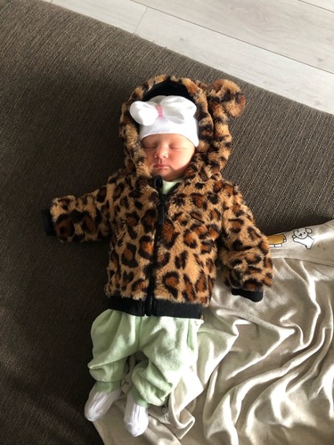 Nu hij 5 weken is is gebleken dat hij het sneller te warm dan te koud heeft, dus nu kleden we hem niet zo warm meer aan 😅