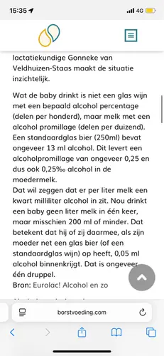 👉 Alcohol zit alleen in moedermelk zolang het in je bloed zit