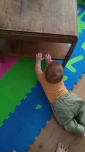 Maar het wordt idd én beter in verhouding, én het went! Broekjes en rokjes heb ik hier meestal een maatje groter, ook qua lengte gaat dat wel redelijk want dan trek ik ze wat hoger op. Qua ontwikkeling geen vertraging; grappig genoeg ging ze hier pas rollen toen we fulltime overstapten op wasbaar, en toen was ze al 7 maanden. Inmiddels staat ze los en ik verwacht dat ze binnenkort wel los gaat lopen ook.