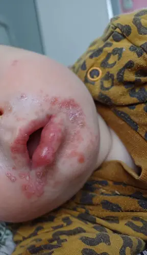 Mijn dochters hebben alle 3 waterpokken overgenomen van de peuterspeelzaal van de 2 oudste nu heeft mijn jongste ook waterpokken sinds 3 dagen alleen nu is dit in haar gezicht veranderd vooral haar mond! Verder op haar lichaam is het 100% waterpokken maar wat is het nu op haar gezicht ze slaapt al 2dagen minimaal van de pijn! Letop dat witte is zalf!