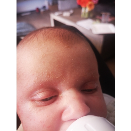 Hoi mijn dochtertje is bijna 6 weken en had eerst onwijze baby acne maar nu zitten er allemaal plekjes tussen haar wenkbrauwen. Het voelt enorm droog aan, iemand een idee wat het kan zijn? Hoort het bij de acne of is het uitslag van voeding ofzo? Ik heb echt geen idee