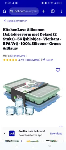 Bekijk IJsblokjes Met Flexibele Bodem | 2-Pack | IJsblokjesvorm | IJsblokjesmaker | Met Klikdeksel | Groen En Blauw op: https://www.bol.com/nl/p/ijsblokjes-met-flexibele-bodem-2-pack-ijsblokjesvorm-ijsblokjesmaker-met-klikdeksel-groen-blauw/9300000005920218?referrer=socialshare_pdp_iphoneapp