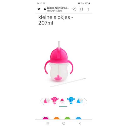 Wij hebben die van Nuby. Heeft zelfs een gooi van de trap overleefd 🤣. Er zit een ring in de dop, opletten dat die na de vaatwasser of afwassen wel blijft zitten (anders kan je poetsen).