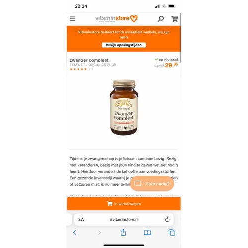 Ik gebruik ook die van essential organics (zwanger compleet). Zijn goed opneembare vitamines, wat hogere kwaliteit dan wat je meestal in de drogisterij kan vinden. Er zit bijvoorbeeld actief folaat ipv synthetische foliumzuur. Ik gebruik er los nog algenolie voor de DHA vetzuren en extra vitamine d3 druppels bij.