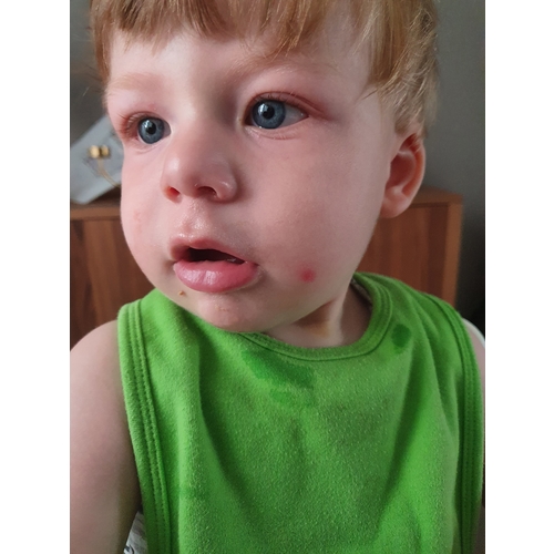 Het zijn zulke rode vlekjes. Die op zijn gezicht is erger geworden ten opzi ...