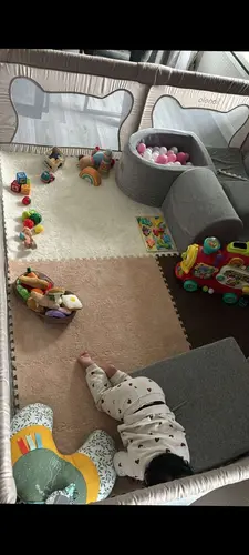 (Geen oordeel naar mensen die er wel een hebben hoor 😊! Ik zou het gewoon persoonlijk niet doen. Onze normale box ging er ook vrij vroeg uit, ze ging lekker de vloer op, op zo'n puzzelstuk-mat.)