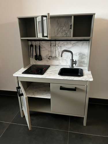 Hier ook die van ikea, van marktplaats. Leuk met kastjes die open en dicht gaan. lampjes aan en uit en haakjes om dingen aan op te hangen en natuurlijk assecoires als pannetjes. Idd met 1 jaar gekocht en nu met 3,5 jaar heeft ze hem nog. Gekocht voor 25 euro ofzo
