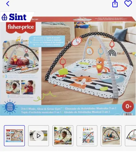 Ja echt afschuwelijk 😂. Maar ze vond em echt superleuk. De mat is wel heel smal t.o.v. die op je afbeelding. Toen ze 6 maanden was legden we de hele boel een meter van haar vandaan, en ze zette alles op alles om erbij te komen 😂.
