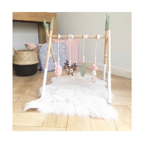 Wij hebben een babygym en muziekmobiel van Ukkepuq. Die kan je ook zelf samenstellen.
