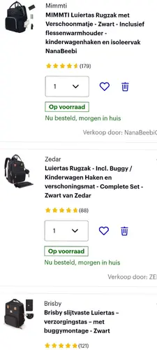 De nanabeebi heb ik terug gestuurd. De rits is irritant, vak blijft niet openstaan en de alles voelt super goedkoop.