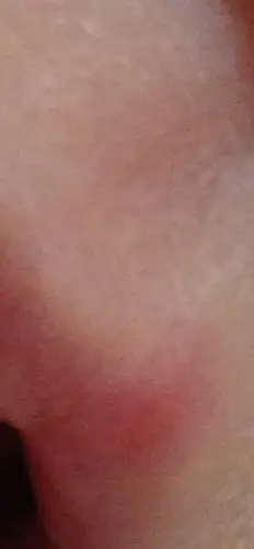 Het is lastig te zien op de foto. Lijkt een soort van rood bultje. Met een soort van schram erin. Maar wat ik zeg. Is lastig kijken want echt stil liggen is er niet bij haha🤣