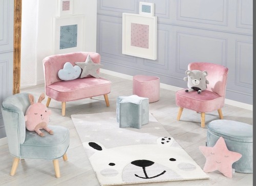 Wij hebben deze voor onze dochter van 3. Lekker zachte fauteuil, maar ook heel stevig en kiept niet om. Via petite amelie.