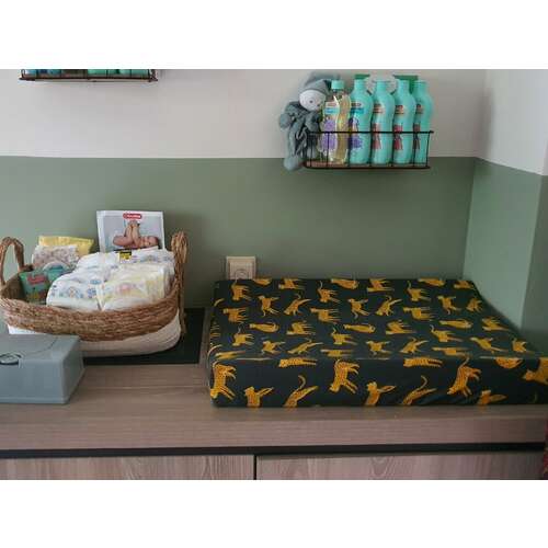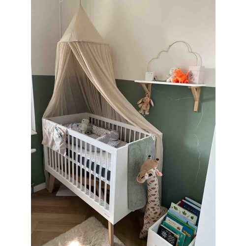 Ik heb hem op de babykamer en het valt me altijd op dat het heel erg afhankelijk is van de lichtinval hoe hij kleurt. De ene keer wat grijzer, de andere keer wat lichter of donkerder. Ik vind het ook een hele mooie kleur wel. Niet te groen, niet te mint, rustig inderdaad.