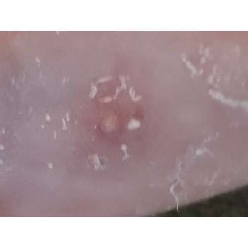 Onze dochter had dit ook met 3 weken op haar boven arm. Nog een beetje groter. Het was een Abses. Morgen naar de huisarts gaan en die verwijst je wel door mocht het nodig zijn.