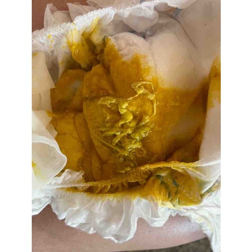 Als ik t zo zie denk ik aan slijm..dat hebben baby's zo nu en dan in de ontlasting. Kan komen door bijvoorbeeld verkoudheid, tandjes, niet fit zijn...