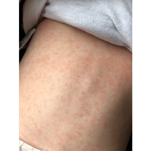 Onze dochter heeft dit een aantal maanden geleden ook gehad via de opvang. Ik vind het al zo sneu als ze ziek is maar het was toen echt een slappe pop. Flinke koorts die met zetpillen wel iets zakte maar nog best hoog bleef en erna al die uitslag. Ook moest ze flink overgeven en wilde niet veel drinken en eten. Verschillende keren met de huisarts gebeld en met vanalles in de weer geweest. Was zo blij dat ze uiteindelijk opknapte. Wel heeft ze nog een tijdje gehad dat bij warmte de uitslag weer te voorschijn kwam maar dit hoorde erbij volgens de huisarts. Beterschap!