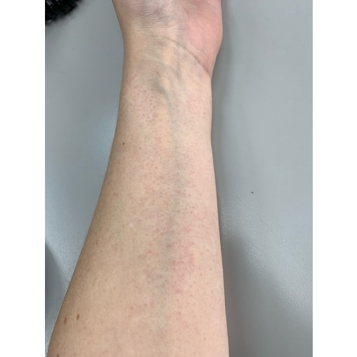 Bij mij was het nog geen week. Het was twee dagen echt heel erg met allemaal bultjes en toen nog enkele dagen alleen maar rode stipjes. Heb het paar keer was ingevet, maar verder niet veel mee gedaan.