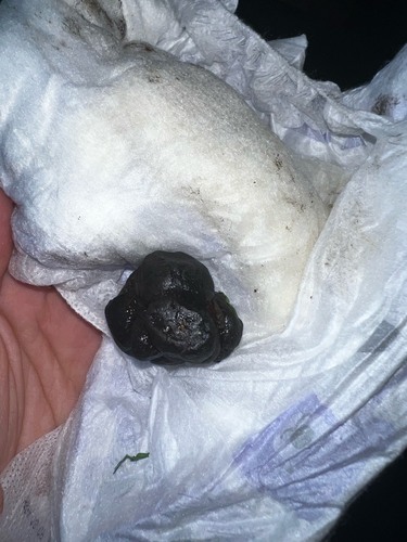 Ik heb nog even gegoogeld en als er sprake is van een interne bloeding dan is er vaak sprake van ‘melena’, een teer achtige zwarte ontlasting. Google maar eens als je een sterke maag hebt. Dat ziet er echt een stuk ernstiger uit. Dit lijkt gewoon een normale drol. Misschien blauwe bessen gegeten? Als je het niet vertrouwt gewoon morgen weer bellen en misschien met een matras naast je kindje gaan liggen ❤️