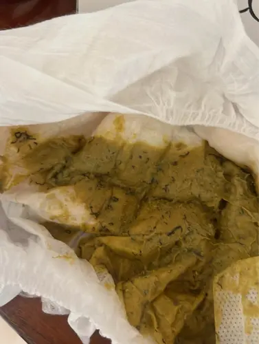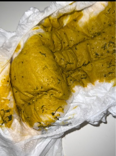 Dit was max 1 theelepeltje aan courgette, hier zie je de onverteerde schil