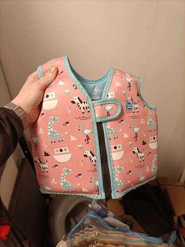 Niet als commentaar bedoeld, maar dit is geen reddingsvest. Niet bedoeld voor op de boot, maar om mee te leren zwemmen. Grote kans dat kleintjes ermee koppie onder gaan. Verdrinken is geluidsloos.