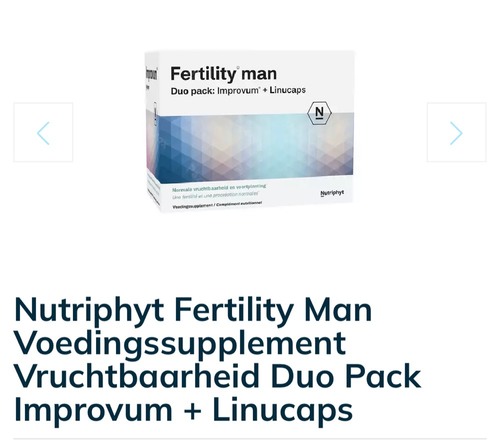 Voor wie het nog interessant vindt, mijn man is nu aan de 4e maand Nutriphyt Fertility man begonnen. Na de eerste testuitslag is hij begonnen.