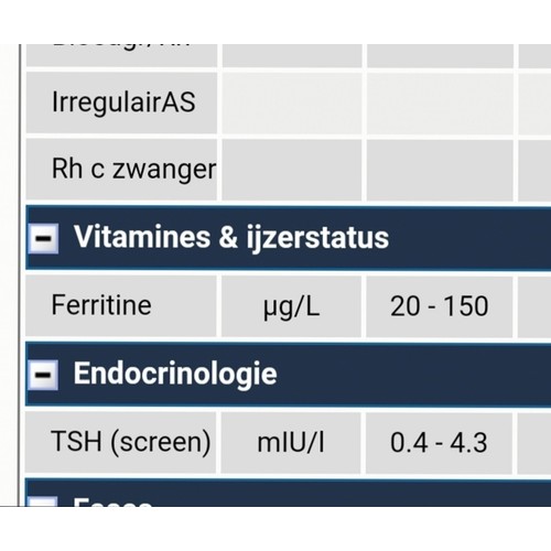 Dit was mijn uitslag. 20 is dus het minimum. Ug/l en ng/ml zijn hetzelfde qua waarde, dus dat zou betekenen dat 12 wel echt te laag is. Zou het even navragen bij je huisarts. Heb je geen online overzicht oid van de resultaten?