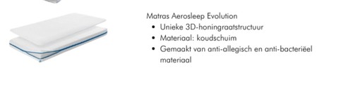 Wij hebben diverse matrassen bekeken en uiteindelijk gekozen voor de aerosleep evolution. Wij hebben deze keuze gemaakt gezien wij vinden dat het matras aan onze eisen voldoet en daarnaast ook goed ademend is.