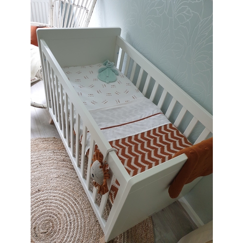 Ik heb hem nu zo opgemaakt (moet straks nog wat korter). En heb dus 2 dekentjes. Van katoen, want ik ben zelf al knap allergisch voor wol. De kans is groot dat de kleine straks ook niet dol op wol is 🙈. Heb ook het dekentje van Meyco (hangt over het ledikant) en nog een ander lakentje.