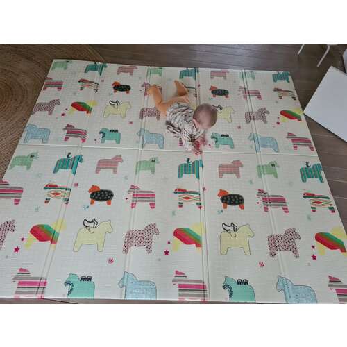 Wij hebben deze, maar ze verkopen hem met andere diertjes ook. We hebben ook de puzzelmat en dan deze antislipspeelmat erbovenop.