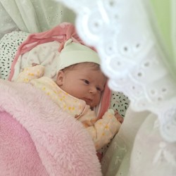 In haar mondje zitten inmiddels wel witte vlekjes.
