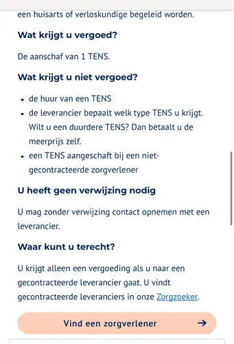 In de screenshot die je hebt gemaakt staat dat je de aanschaf van een TENS vergoed krijgt, en de huur niet.