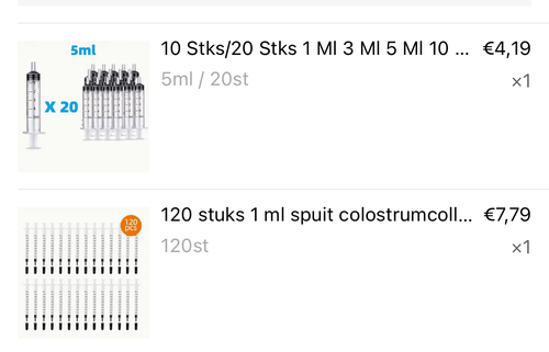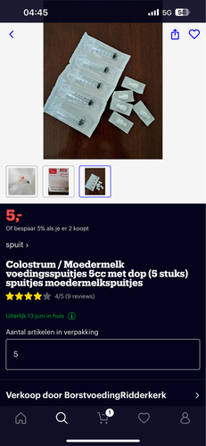 Ik heb ze bij bol.com besteld: Bekijk Colostrum / Moedermelk voedingsspuitjes 5cc met dop (5 stuks) spuitjes moedermelkspuitjes op: https://www.bol.com/nl/p/colostrum-moedermelk-voedingsspuitjes-5cc-met-dop-spuitjes-moedermelkspuitjes/9300000045211606?referrer=socialshare_pdp_iphoneapp
