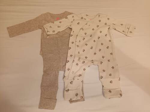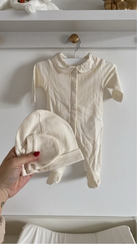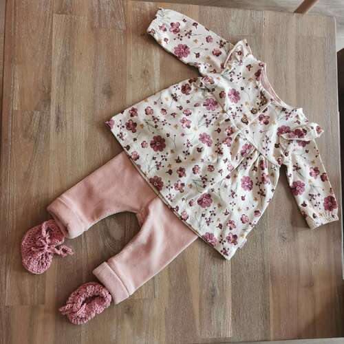 Denk hetzelfde als onze dochter aan had. Een overslagromper, en dan een boxpakje.