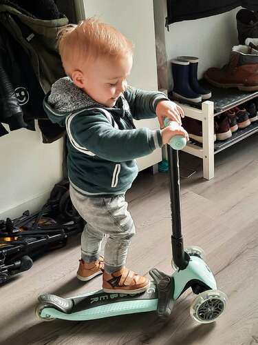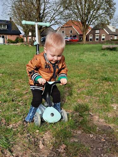 Wij hebben ook z'n soort step gekocht (alleen ander merk) voor zijn eerste verjaardag,,, onze heeft een duwstang erbij en we gebruiken hem elke dag met de hond uitlaten,,, en dan is het elke keer weer ruzie omdat we thuis zijn en hij nog een ronde wilt,, ook halen wij het zitje eraf zodat die zelf kan steppen.
