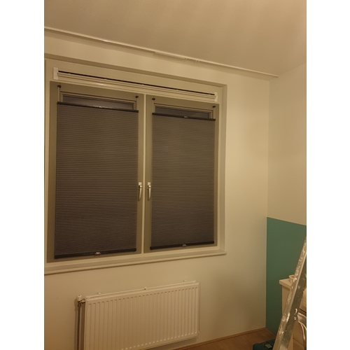 Gordijnen zijn helaas nog niet binnen maar hier zie je al wel de rails. Wij hebben ook een vensterbank (niet heel diep gelukkig) en verwarming. Het gordijn hangt dan wel voor de verwarming maar aangezien ons huis heel goed geïsoleerd is zal die niet heel vaak aan staan.