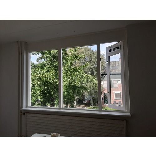 Wij hebben tot onder de vensterbank, maar boven de verwarming. Zo hou je we ...