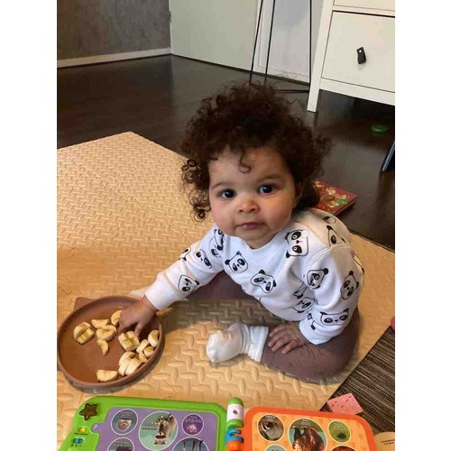 Hier ook een meisje met krullen (zo ongeveer het enige wat ze van mij heeft 😉). Hier zo min mogelijk wassen met shampoo (1x per week) want daar wordt het droog en pluizig van. Verder altijd Naïf haarlotion en dan de krullen er goed in kneden! Voor nu vind ik dit voldoende want door spelen en slapen zit het toch snel door de war.
