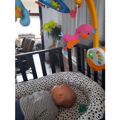 Boxmobiel al een tijdje! Als we hem aanzetten gaat ie lachen en blij trappelen.