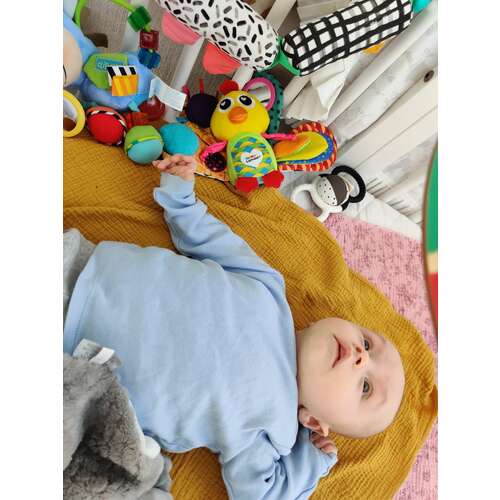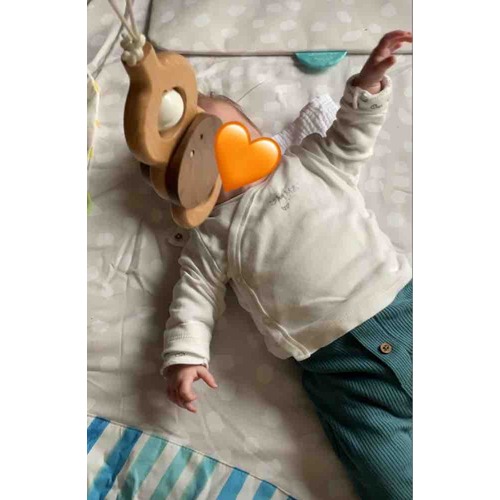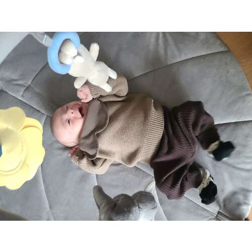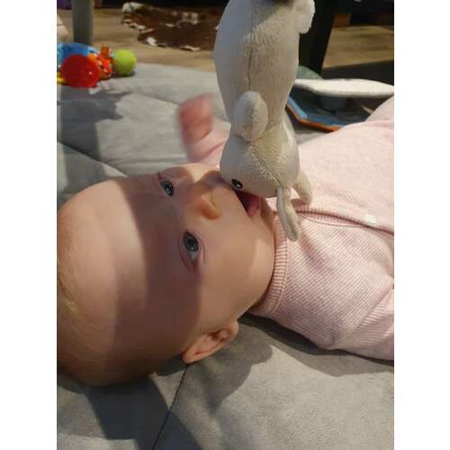 Ik gebruik het speelkleed al 12 weken en ik heb dankzij jou net pas ontdekt dat meneertje konijn piept 😂 die van ons gaat er graag onder ligge om aan meneertje konijn te lekken. En de kreukeloortjes van het muisje vind ze ook leuk !